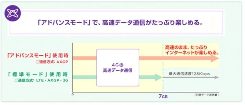 アドバンスモードにすると月7GBの制限は外れるけれど、完全に使い放題になるのとはちょっと違う。